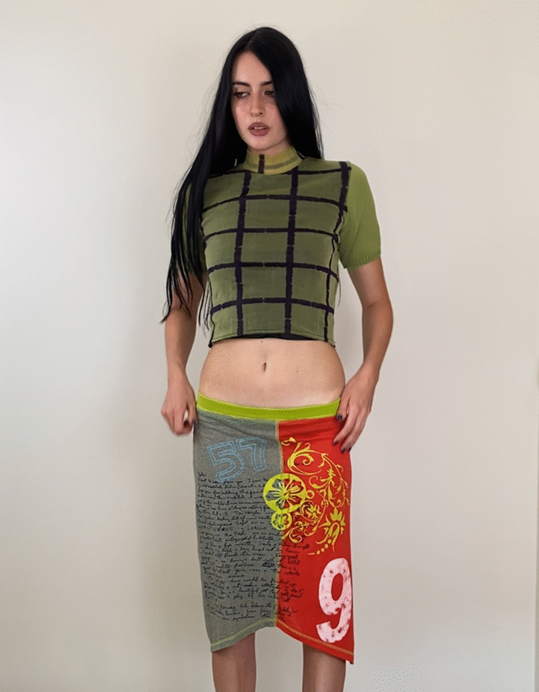 Amaya Arzuaga cropped green top with plaid print with knitted sleeves