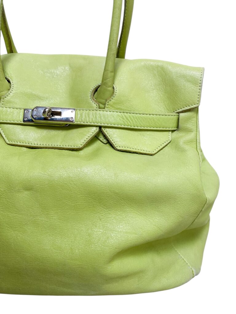 pale green firkin bag with silver hardware in genuine leather.