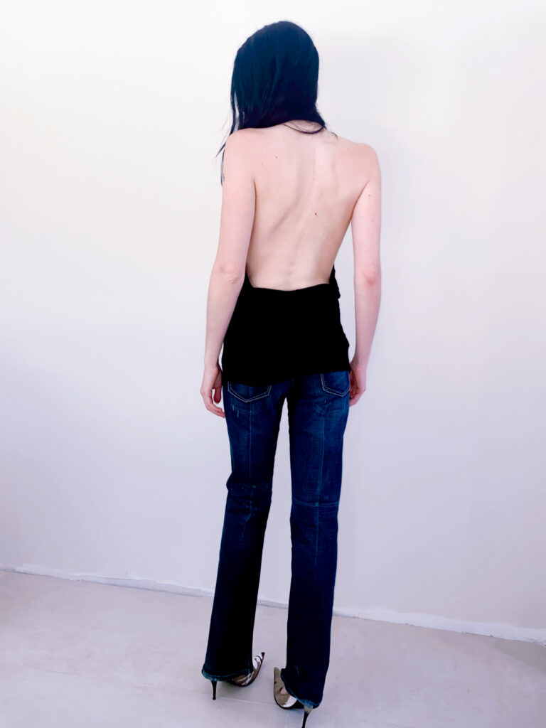 Open back long top with buttons closing on the front. Can be worn as a micro dress too