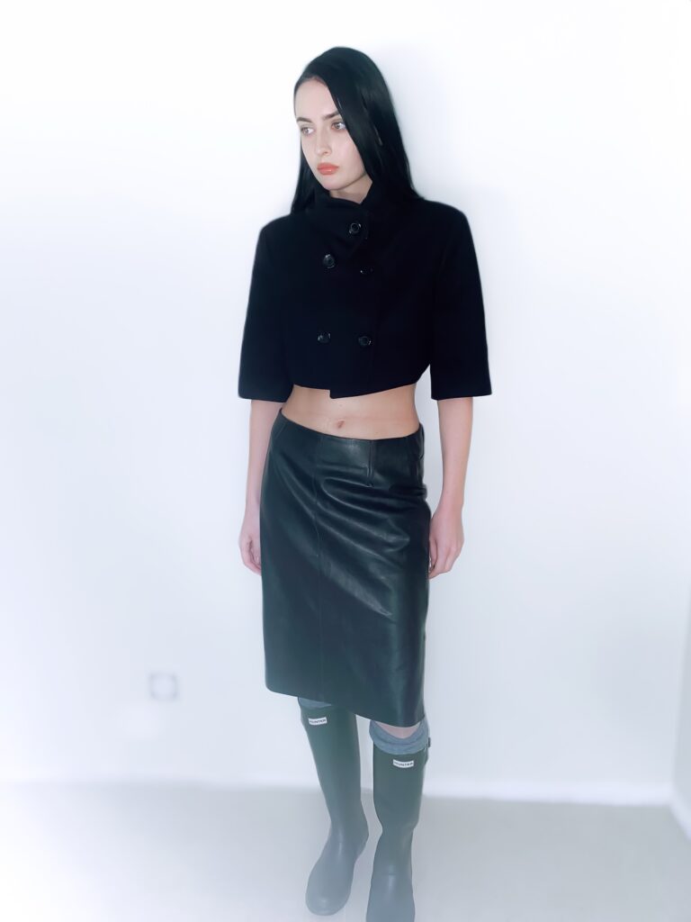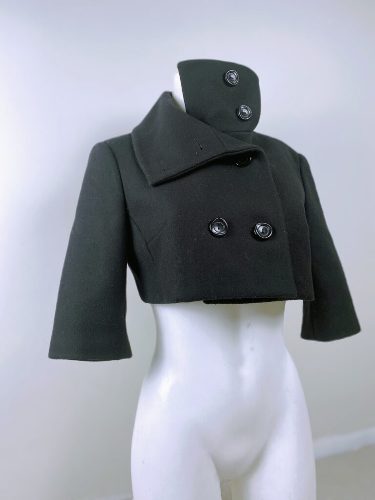 Bolero cropped peacoat jacket with double-breasted closing and high neck.