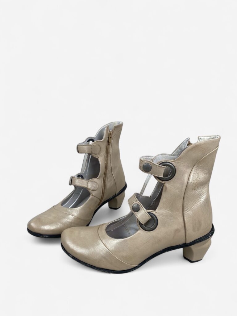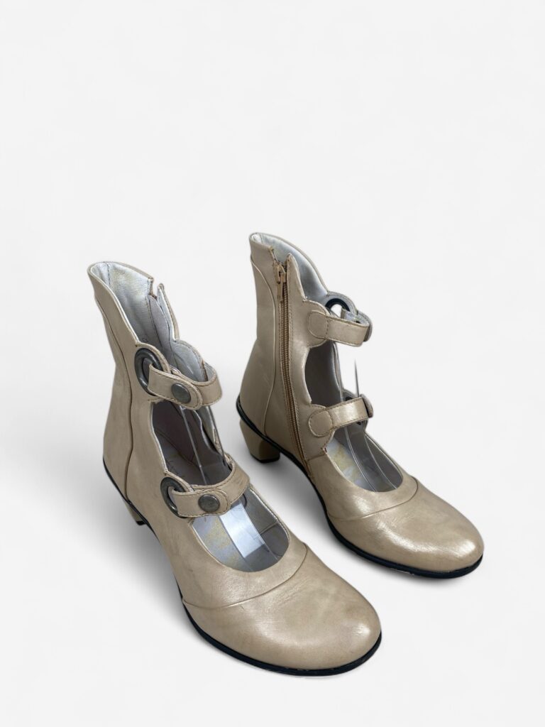Vintage sculpted beige/golden Mary-Jane shoes with three rows of stripes