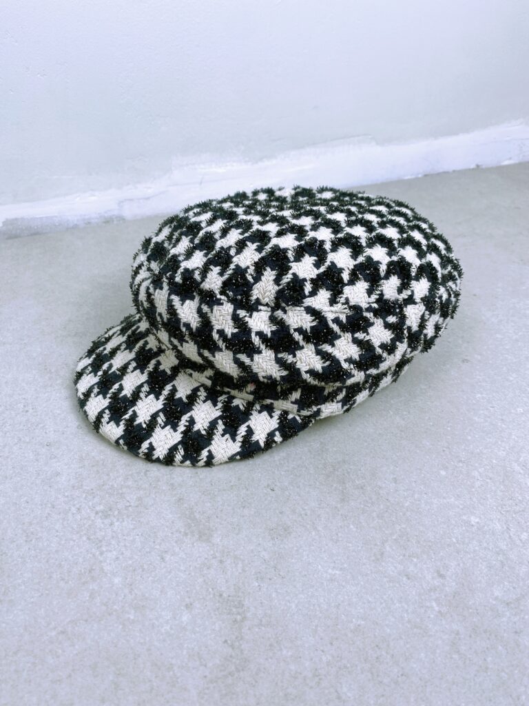Black and white woolen cap (baker boy hat) with houndstooth pattern