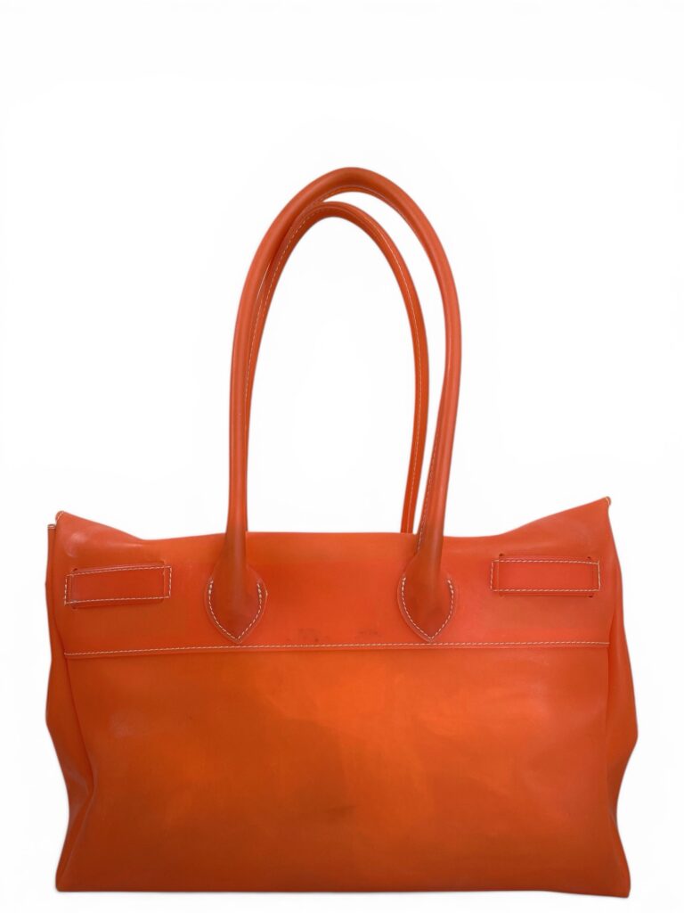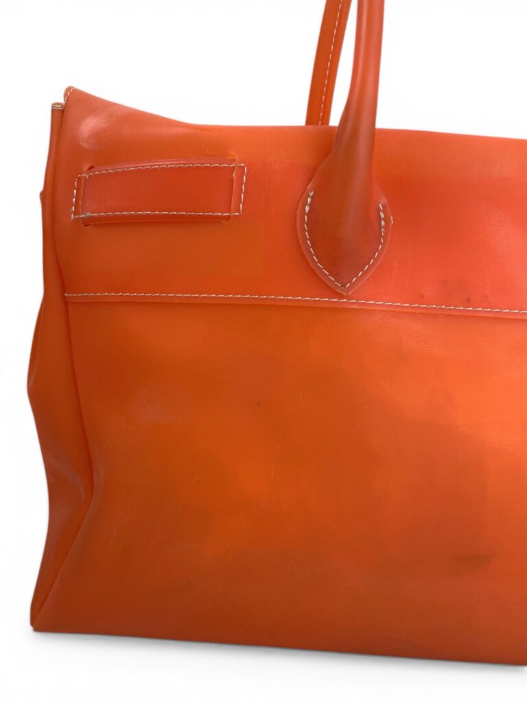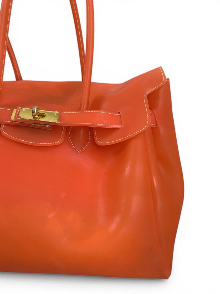 medium large sized orange jelly firkin shoulder bag with gold hardware Measurements: