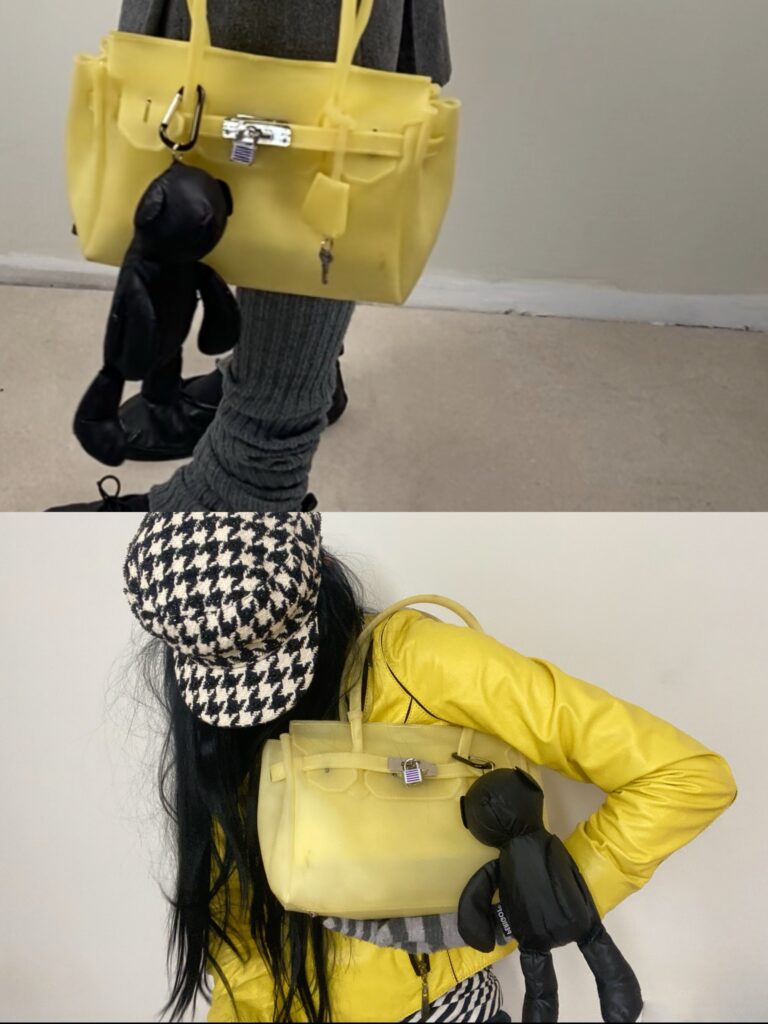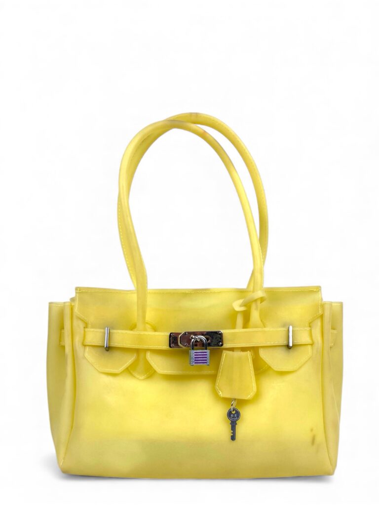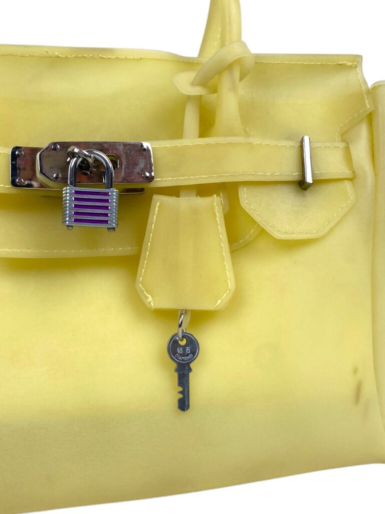Pale yellow mini jelly firkin bag with silver hardware. Comes with original padlock and little key