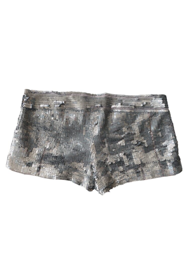 Patrizia Pepe silver sequins mini shorts with belt detail