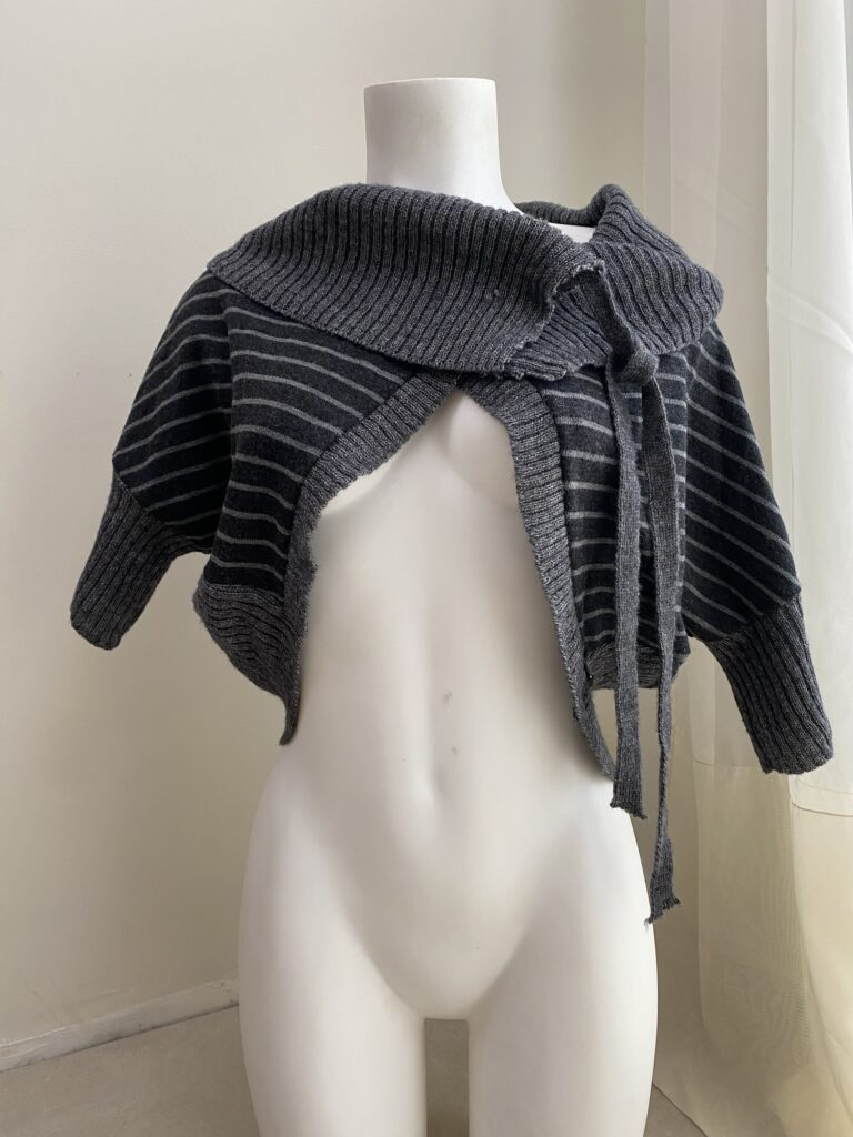 Striped knitted shawl/bolero with asymmetrical line