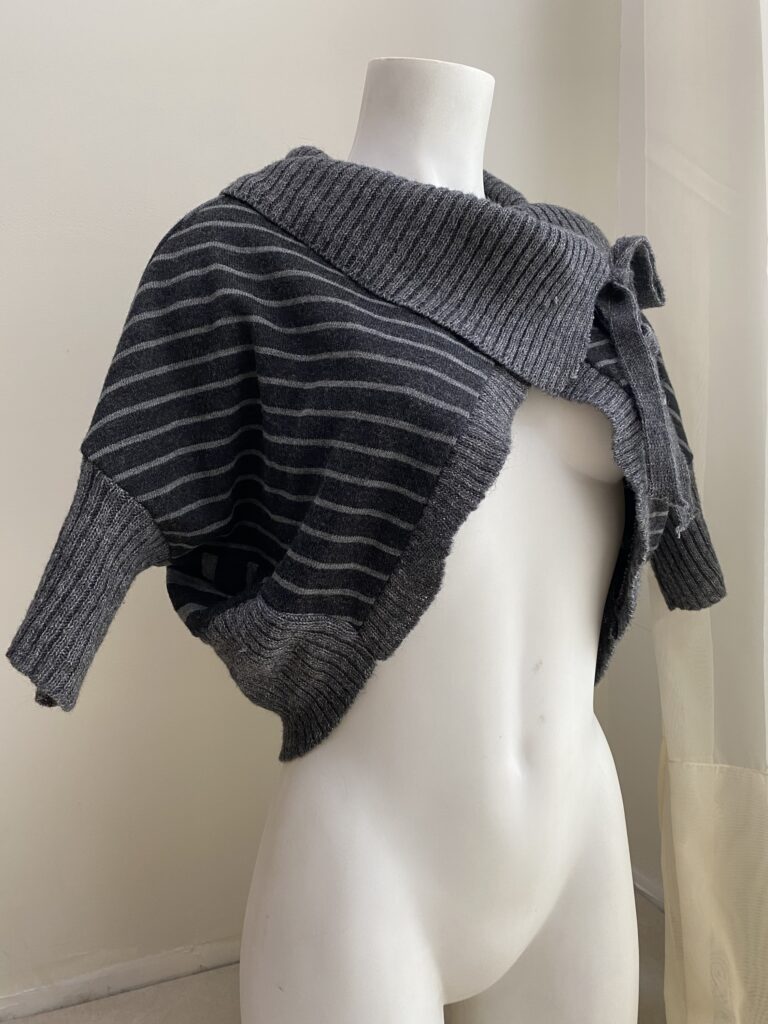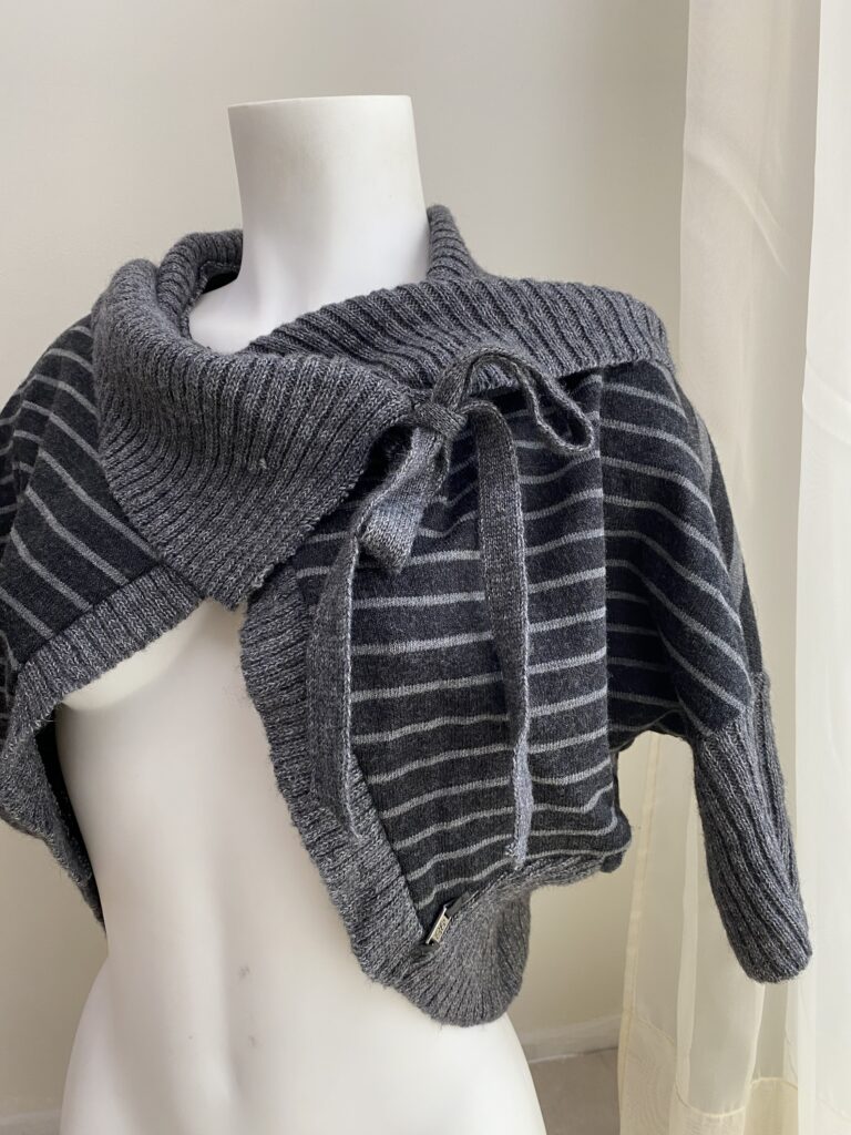 Striped knitted shawl/bolero with asymmetrical line