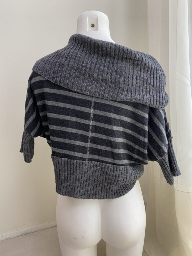 Striped knitted shawl/bolero with asymmetrical line Fits XS to L