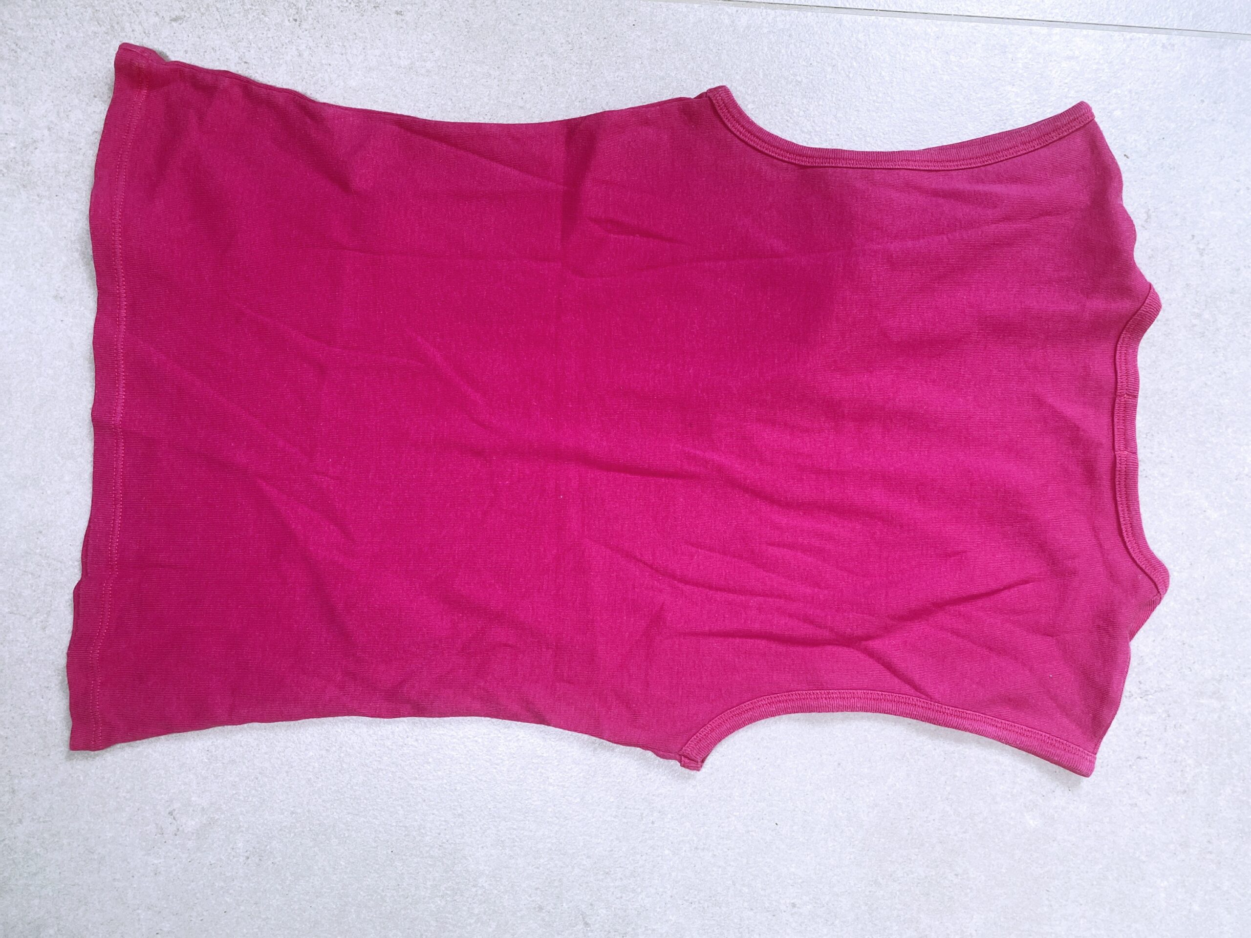 Bright pink cotton tank* with v shaped chest opening.